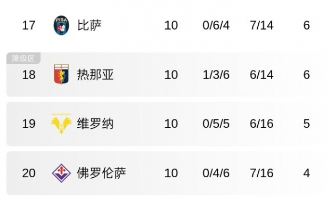 佛罗伦萨本赛季意甲开赛至今4平6负积分榜垫底,是3支未尝一胜的球队之一,球队本轮主场0-1负于莱切,遭遇两连败。