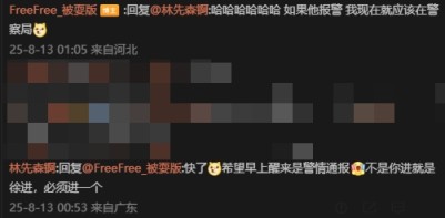 有网友在“FreeFree_被耍版”评论区留言:“希望早上醒来看到警情通报,不是你进就是徐进,必须进一个。”