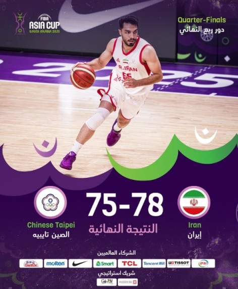 8月14日讯 男篮亚洲杯1/4决赛,伊朗上演21分大逆转,78-75险胜中国台北挺进四强。