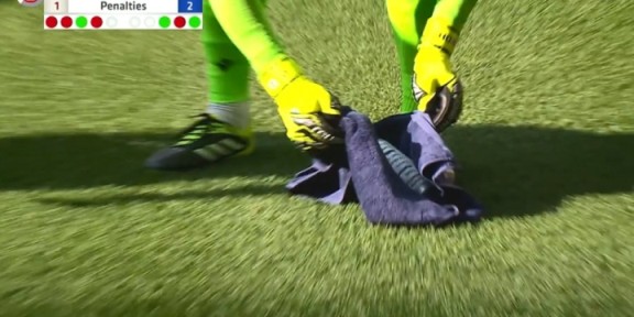 在点球大战间隙,水晶宫门将亨德森查看提前准备在水瓶上的小纸条,最终先后扑出麦卡利斯特和埃利奥特的点球,成为关键先生。