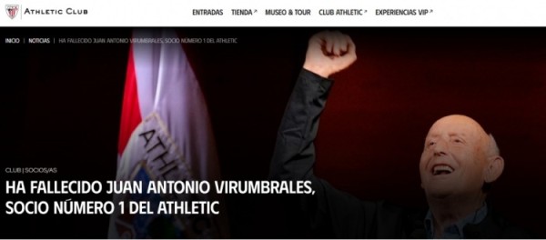 8月11日讯 毕尔巴鄂竞技官方消息,俱乐部一号会员离世。