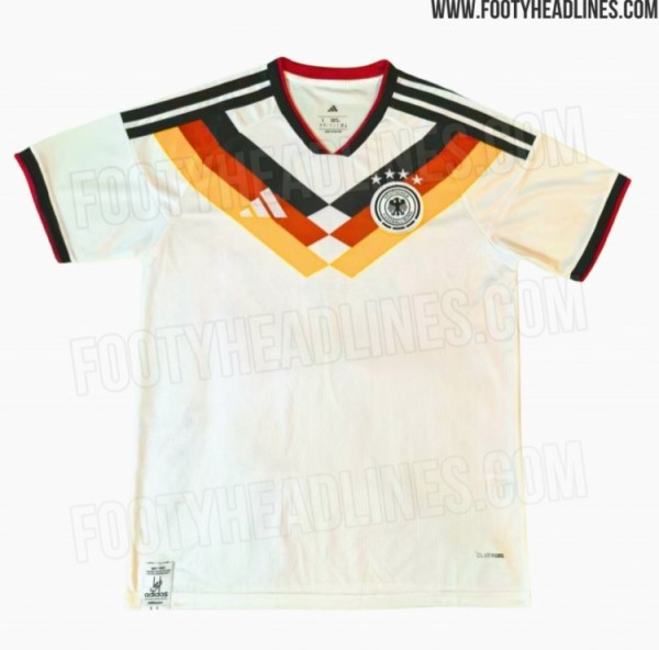 8月12日讯 足球装备网站footyheadline曝光德国队2026年主场球衣谍照,设计灵感来源于1990年和2014年世界杯主场球衣。
