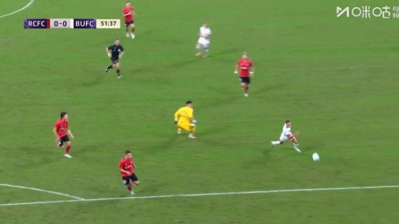 比赛第51分钟,刘殿座出击失误未能解围,曼谷联球员左路小角度面对空门打丢。