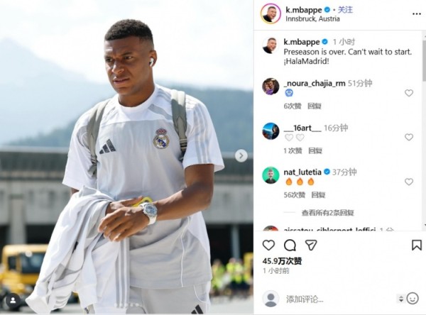 在INS上,姆巴佩写道:季前准备已经结束,迫不及待想要开启新赛季。加油皇马!