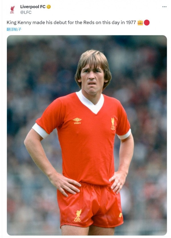 传奇!达格利什红军首秀48周年,利物浦官方社媒致敬