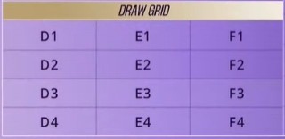 东亚区同理,12支球队对应进行抽签编号,一档球队落位前两行(D1-F2),二档球队落位后面两行(D3-F4)。伴随着球队编号落位,对应的联赛阶段对手将实时确定。