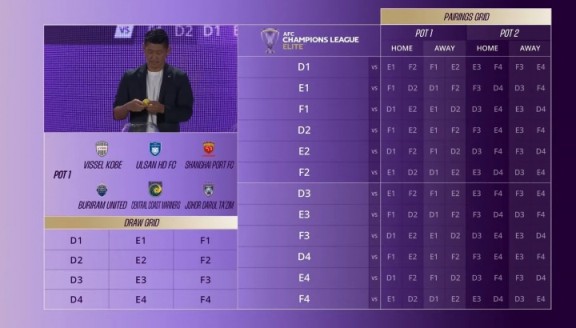 一档:神户胜利船(日本)、蔚山HD(韩国)、上海海港(中国)、武里南联(泰国)、墨尔本城(澳大利亚)、柔佛新山(马来西亚)