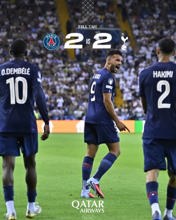 08月14日讯 欧洲超级杯决赛,巴黎圣日耳曼对阵热刺,两队90分钟2-2战平,比赛进入点球大战。
