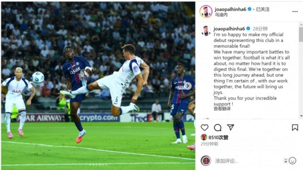 我们还有许多重要的比赛要一起去赢得,足球就是这样,无论这场决赛的结果有多难接受,我们都将在未来的漫长征程中并肩前行。但有一点我深信不疑,通过我们的共同努力,未来必将带来欢乐。