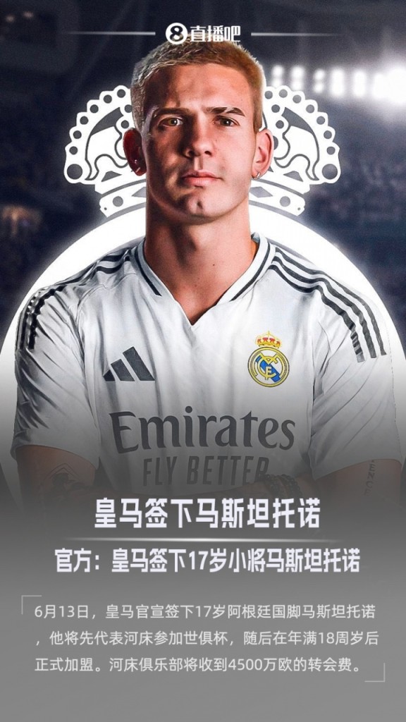 8月14日讯 今天是马斯坦托诺的18岁生日,他将于北京时间今晚19点在皇马正式亮相。