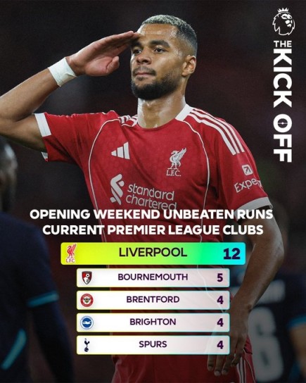08月14日讯 据英超官方统计,利物浦已经实现了连续12赛季英超首轮不败,在英超现有球队中位列第一。
