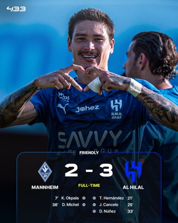 踢这就是玩!努涅斯首发+连场破门,利雅得新月3-2胜德丙球队