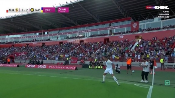 08月11日讯 利雅得胜利vs西乙阿尔梅里亚第39分钟,C罗禁区被门将放倒后造点亲自主罚命中,胜利2-1反超阿尔梅里亚!